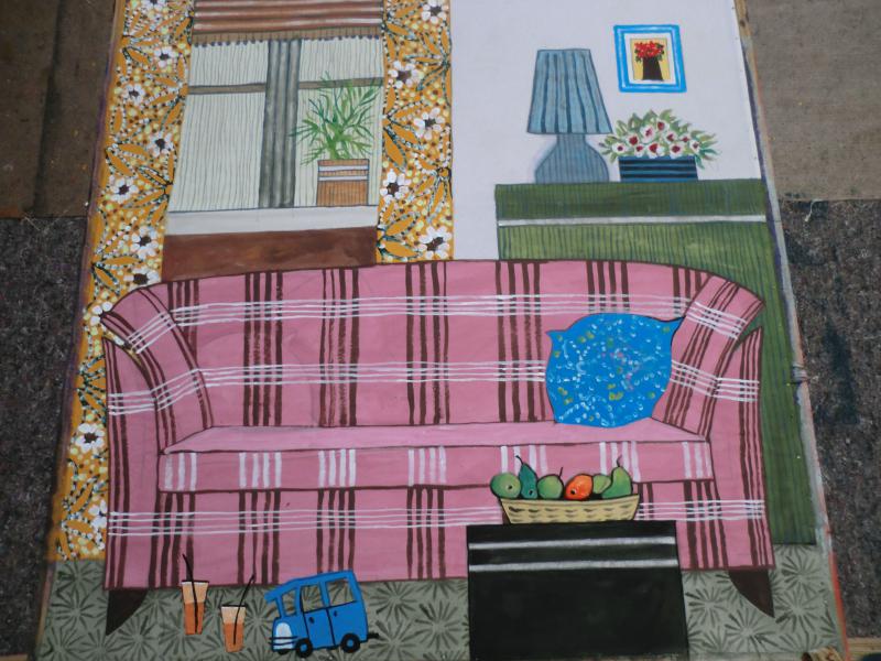 Geregeld werk ik voor theaters, winkels of festivals. Hier zie je een dwarsdoorsnede van mijn werk.